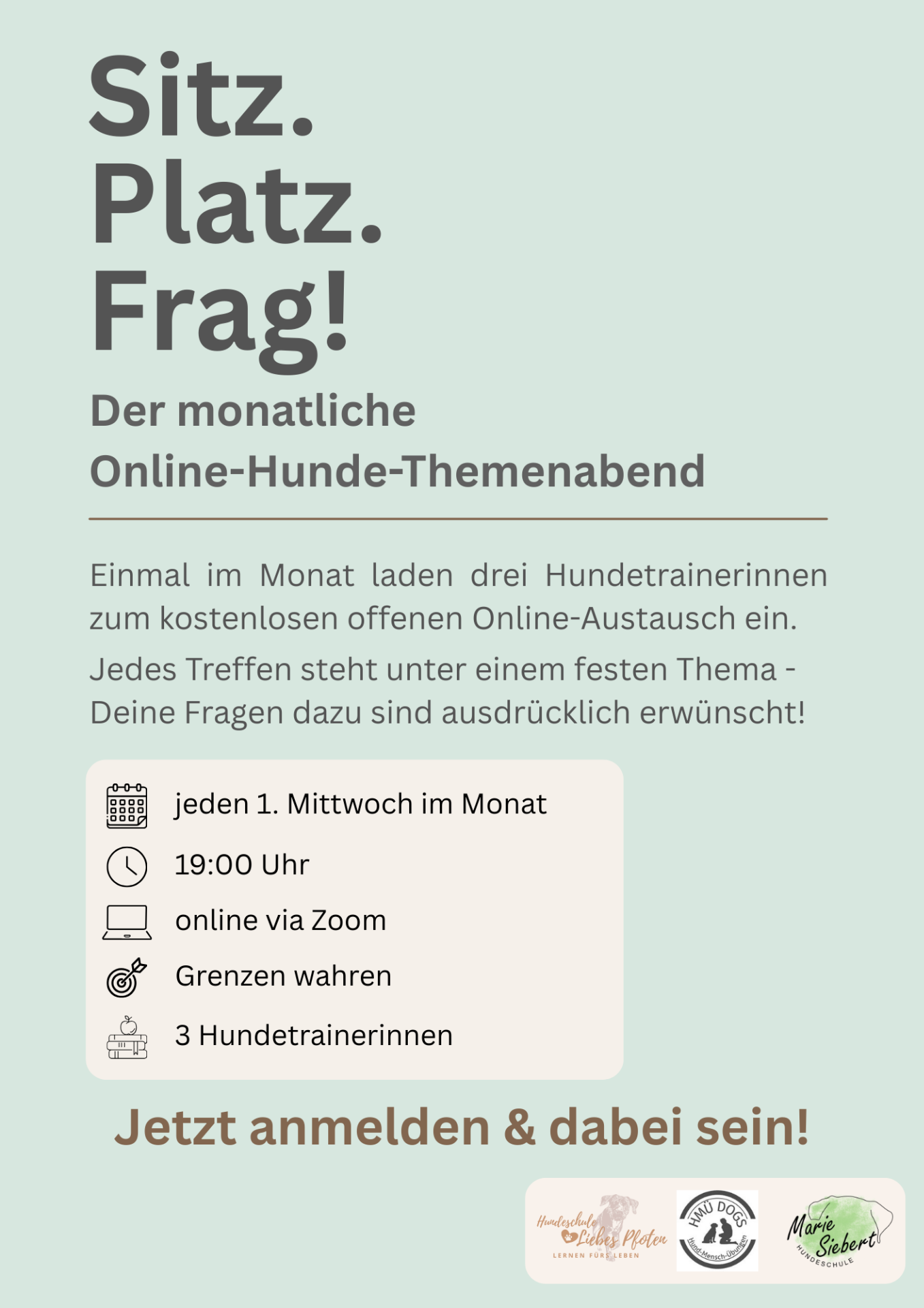 Einmal im Monat laden drei Hundetrainerinnen zum kostenlosen offenen Online-Austausch ein.